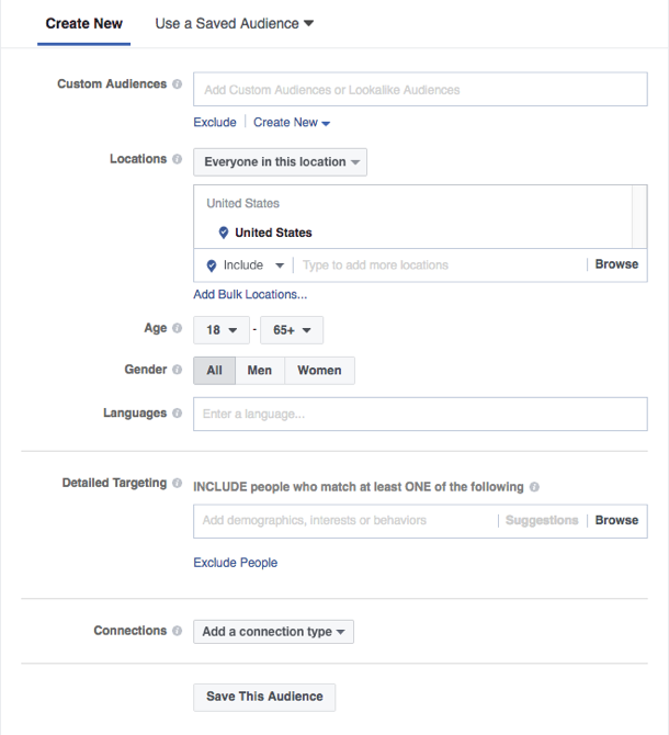If your audience isn’t on LinkedIn, Facebook offers similar targeting options for paid social promotions. Just like LinkedIn custom audiences, Facebook has the option to create custom audiences for your paid content distribution strategy.